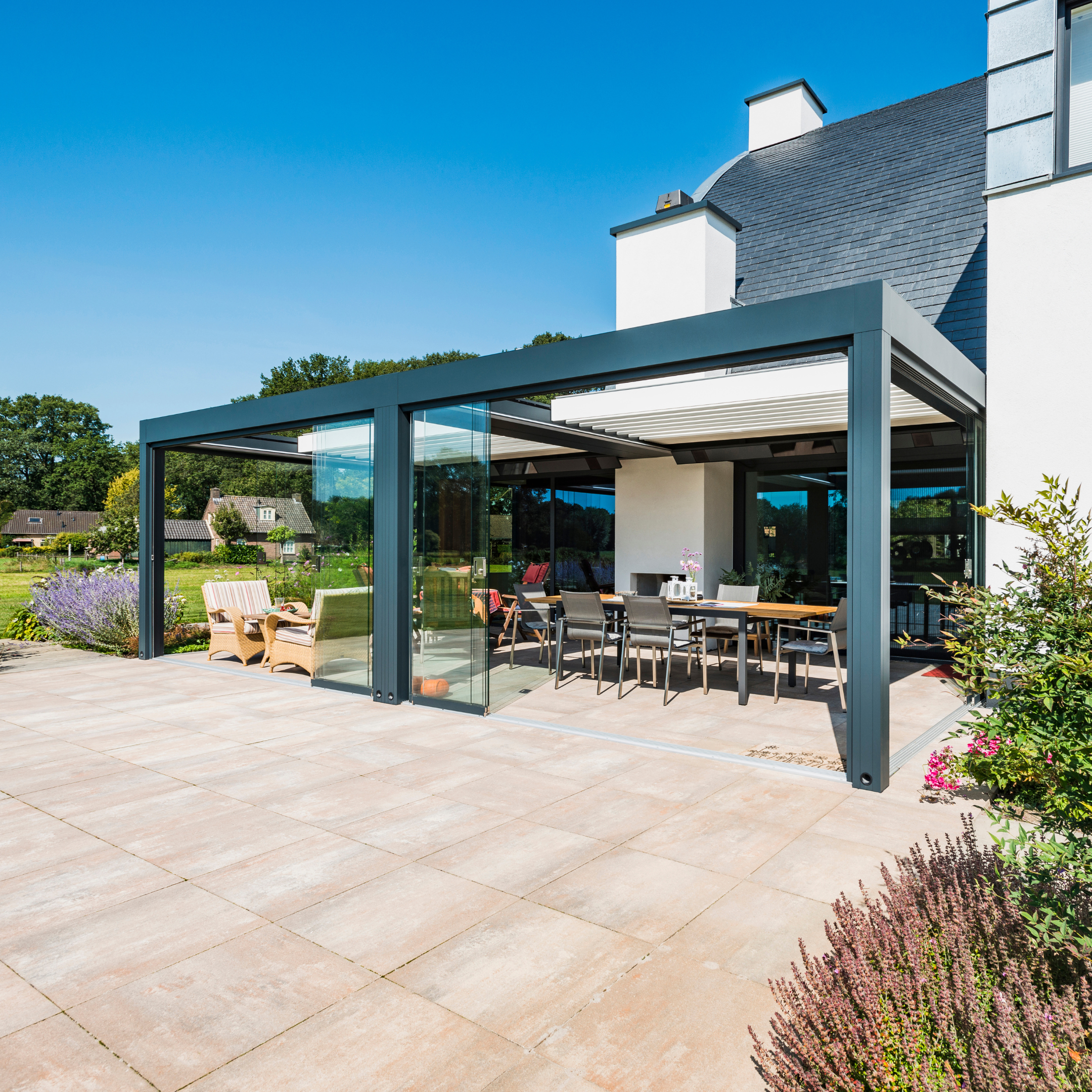 Robust, stylish, and weatherproof - a sleek design with a fixed roof system for reliable protection and year-round outdoor enjoyment