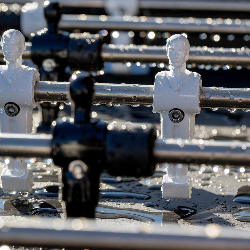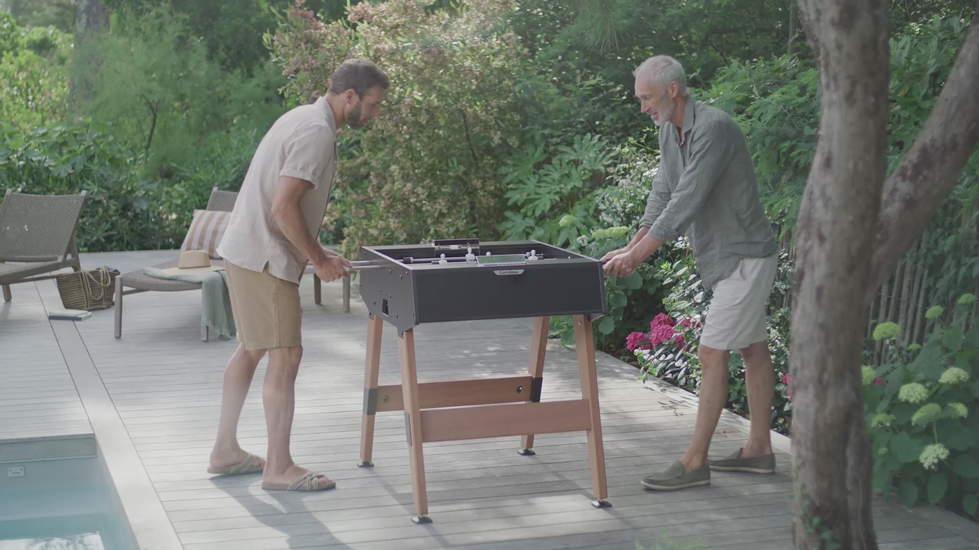 The Origin outdoor football table was developed in collaboration with Stella, a company based in the north of France. This model features a unique design and durability. Its wooden legs, integrated into the body, give it finesse and elegance.