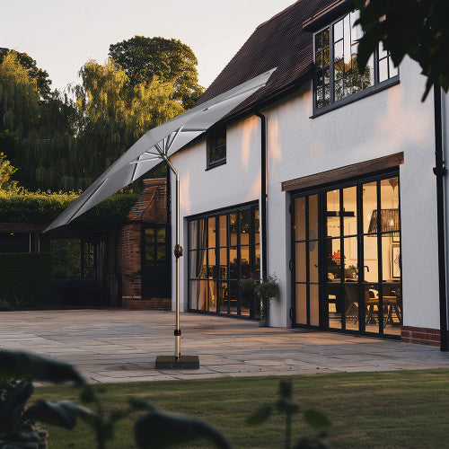 The Glow Defender 3m Round Centre Pole Parasol makes it possible to enjoy the summer days for longer with integrated warm white LED lighting in the ribs, similar to the Challenger Glow.