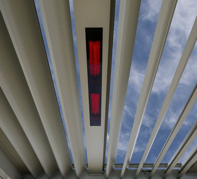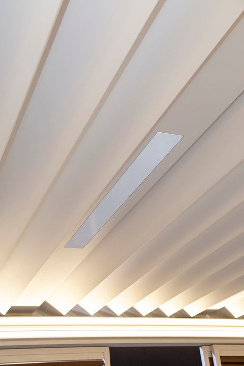 The Renson Aero can be enhanced with integrated heating elements, allowing you to enjoy your outdoor space comfortably even during cooler months. Discreet and efficient, these heaters are seamlessly incorporated into the structure to maintain the Aero’s clean, modern look. Designed to deliver gentle, consistent warmth, they create a cosy atmosphere without compromising style or space. Whether you're hosting guests or unwinding in the evening, the addition of heating ensures that your outdoor area remains usable and inviting all year round.